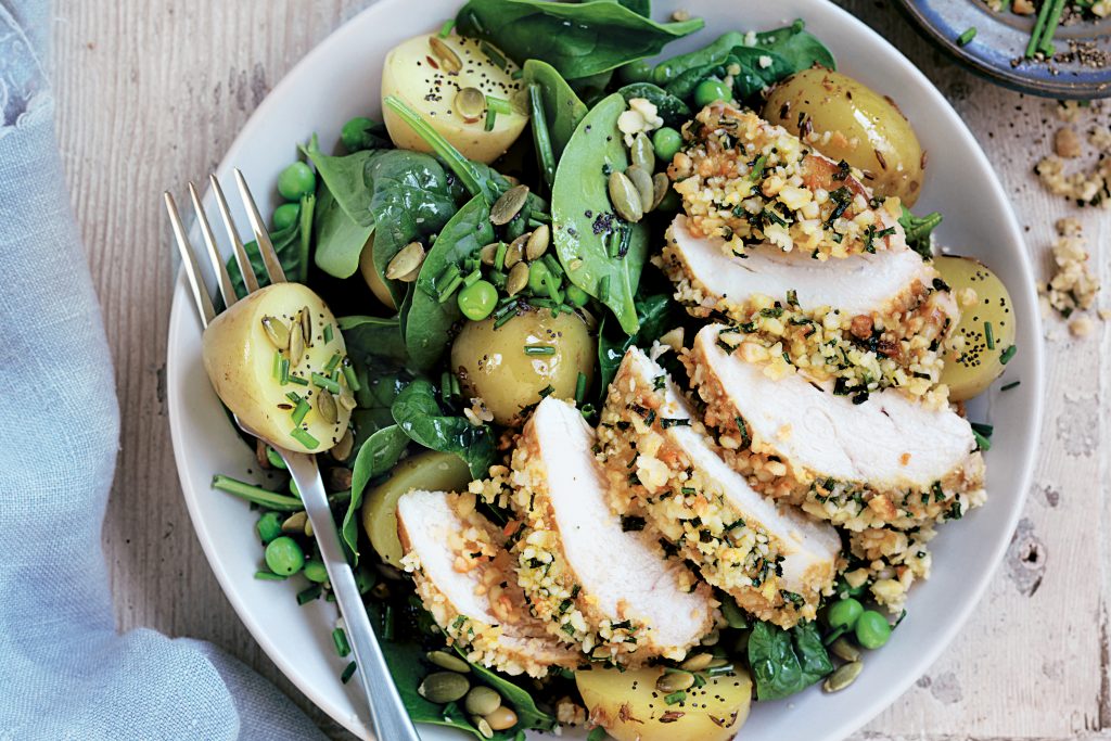 Món 2: Gà áp chảo phủ hạt mắc ca Macaday giòn rụm